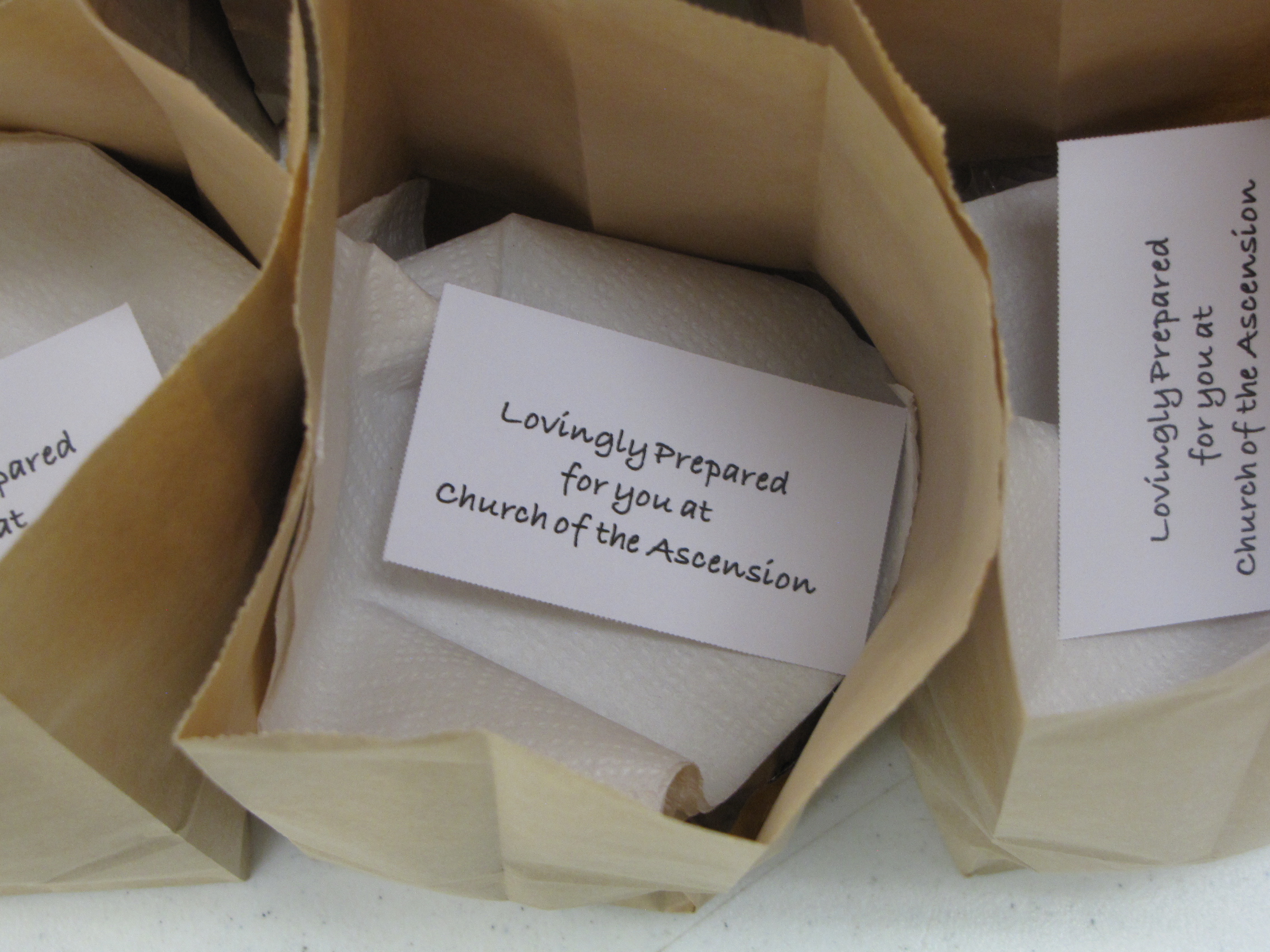 The changes started in April 2020 when a small group of volunteers – few enough to allow physical distancing in the kitchen – made up 50 bagged lunches to be handed out at the church door. Each contained an egg salad or a cheese sandwich, a piece of fruit, a muffin, a boxed drink and a card that says “Lovingly prepared for you at Church of the Ascension”. But few people showed up at the door to pick them up.